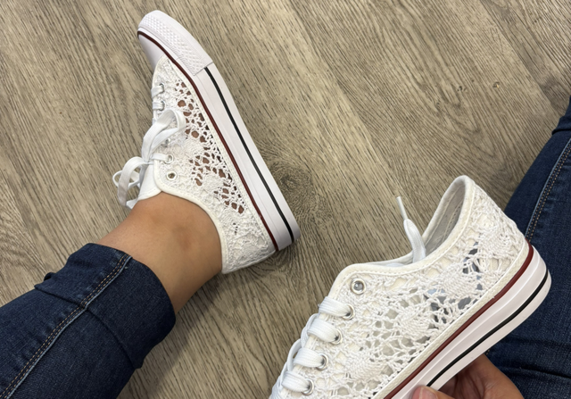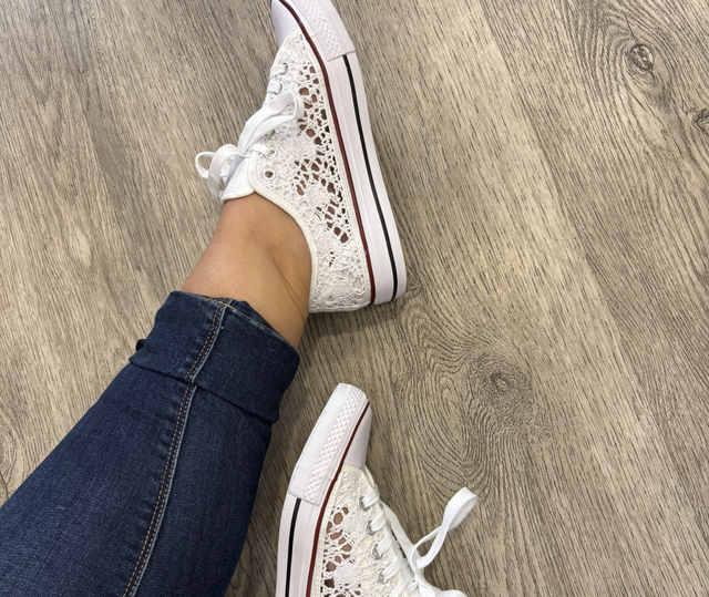 Baskets blanches en dentelle