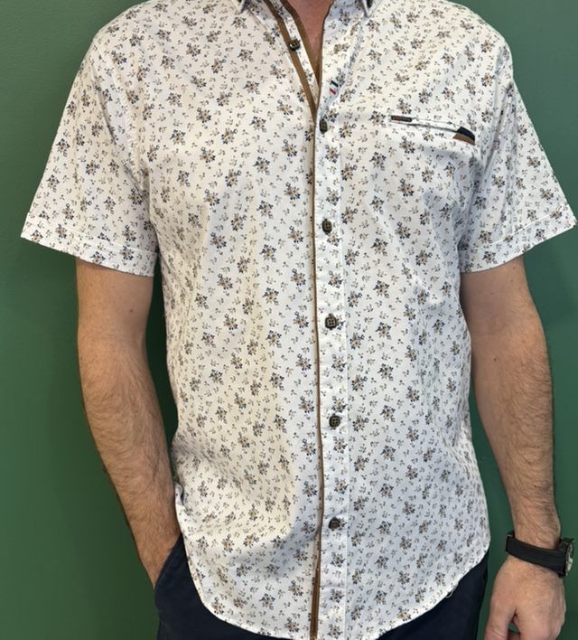 Chemise blanche avec motifs à fleurs manches courtes