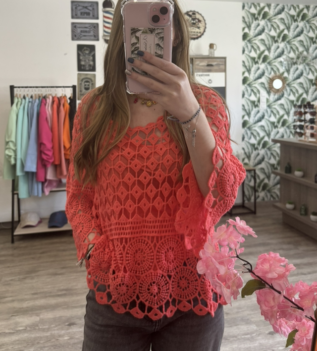 Haut en dentelle avec débardeur corail