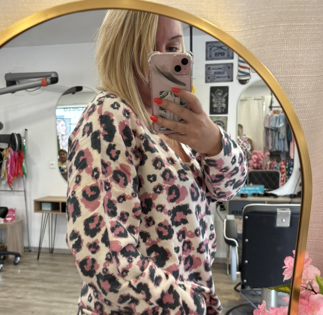 Pull léopard rose