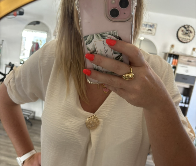 Robe écru avec bijoux doré