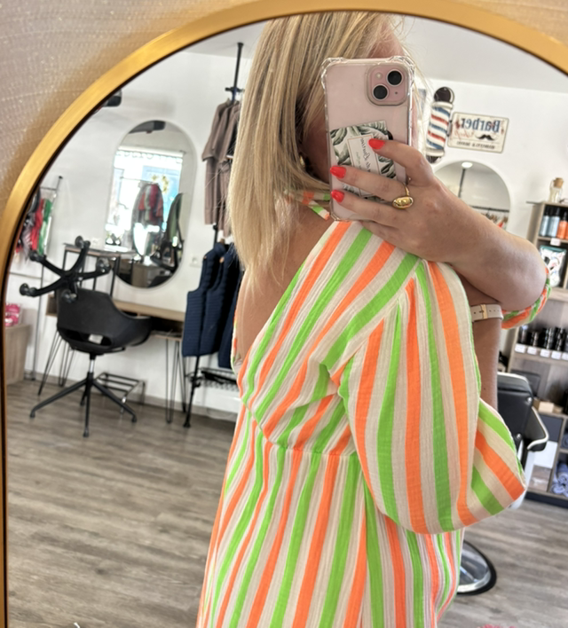 Robe longue rayé vert et orange gaze de coton