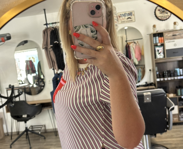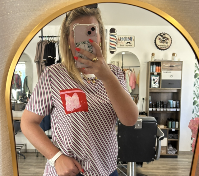 T-shirt rayé rose papillon