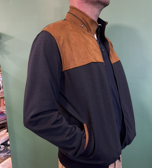 Veste bleu marine et marron en daim